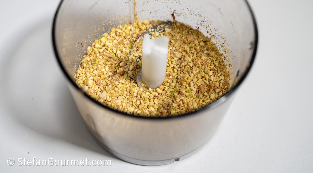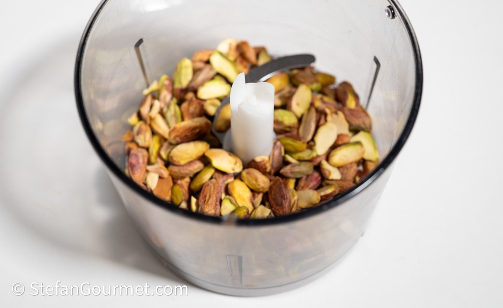 Toast the pistachios in a preheated oven for about 10 minutes at 180C/350F. Try to rub off as much of the skin as possible, then place them in a food processor…