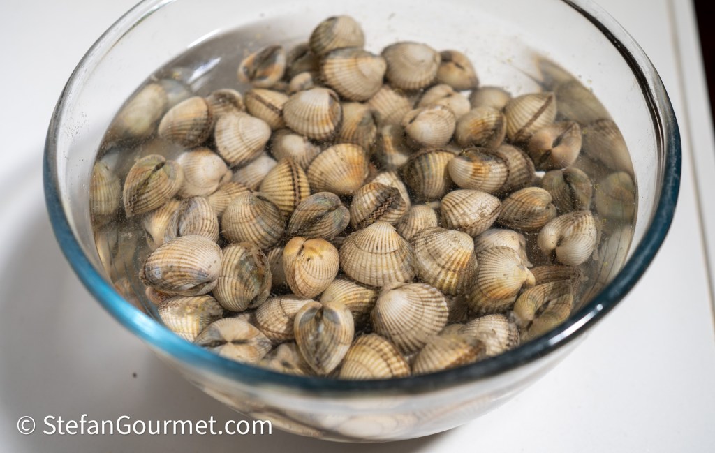 - 1 kilo (2.2 lbs) vongole (I used local cockles)