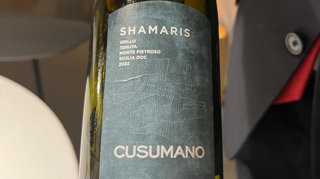 The wine for the next two antipasti is Cusumano Shamaris 2022, 100% Grillo from Tenuta Monte Pietroso in Sicily. A light and elegant wine.