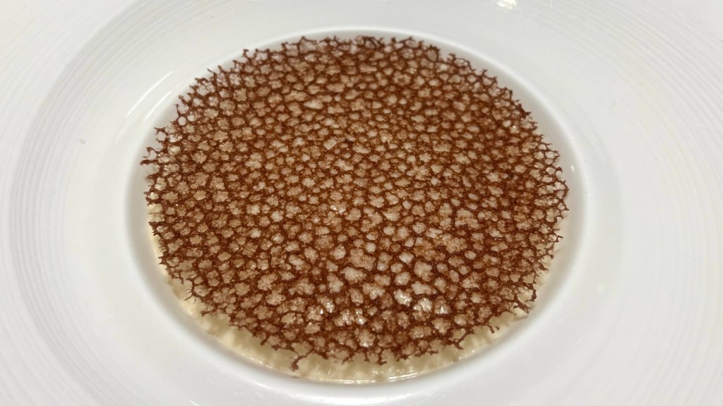 It was a very good pairing for another amazing dish: crème brûlée of octopus. The octopus was separated into skin and flesh, with the octopus skin turned into the ‘skin’ of the crème brûlée, and the flesh was used in the ‘pudding’ with cream of cauliflower. The flesh was very tender and the combination of octopus with the mild cauliflower worked very well. The octopus flesh was very tender with a pleasant bite.