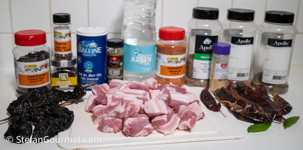 - 1080 grams (2 lbs 6 oz) pork belly without rind, cubed