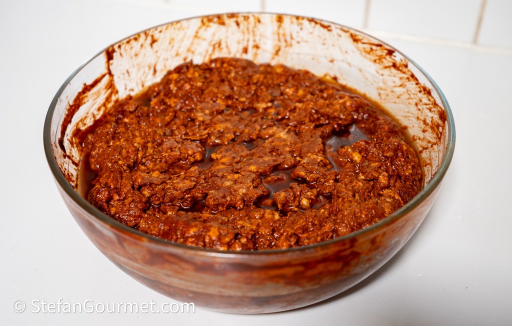 Cover and refrigerate overnight. If you are not going to stuff the meat into casings, your chorizo is already done. To get rid of excess vinegar, place the meat in a sieve lined with an old but clean tea towel for some time. Then vacuum seal it in portions to freeze.