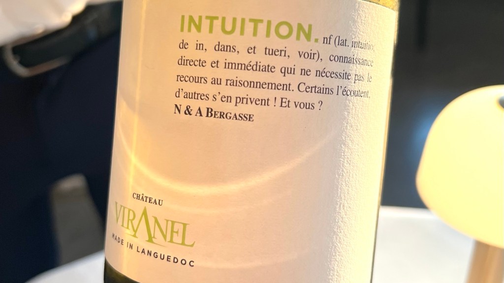 The next wine was a white Rhône blend (Grenache blanc 60%, Vermentino 20%, Roussanne 15%, Bourboulenc 5%) from Saint-Chinian in the Languedoc (France). Nicely aromatic and structured but low acidity.