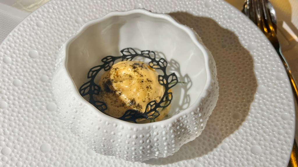 The second amuse bouch was quite nice with langoustine kissed by fire and flours from the restaurant’s garden.