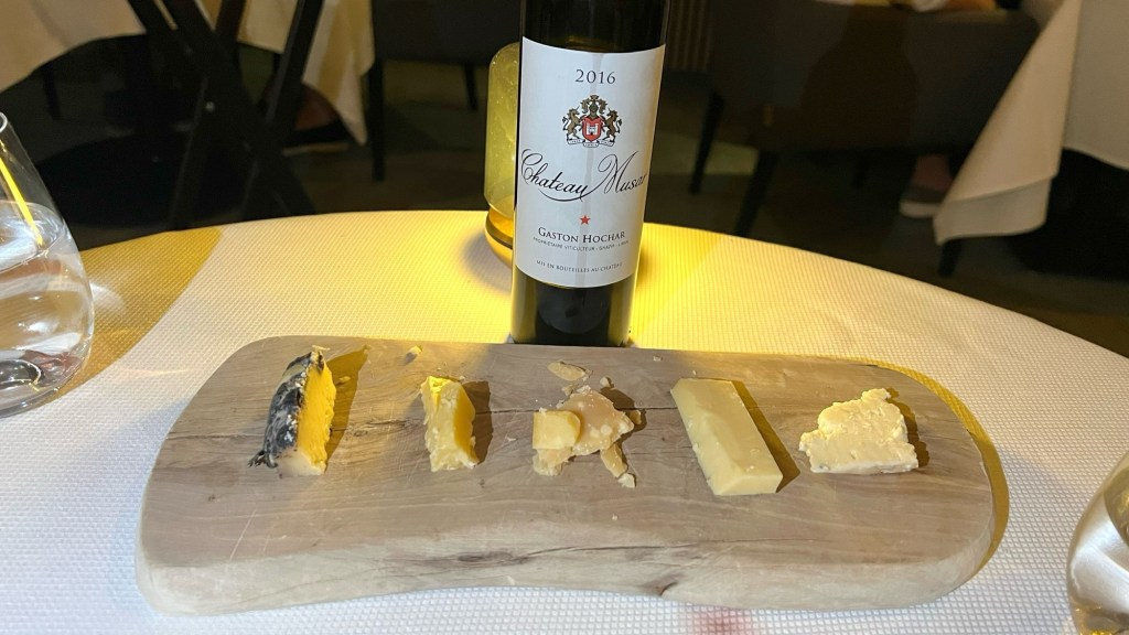 We finished the Chateau Musar with a selection of cheeses from the cheese cart. The Testun al Barolo was the best combination.