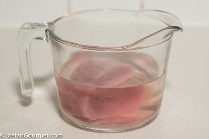A topic that I’ve seen a lot of debates about is salting before or after sous vide. We all know that if you put salt on food, it will draw out liquid from the food. So it seems quite simple and a lot of people give this advice: salt after sous vide to keep more juices in your meat. (The photo shows eggplant, because it is more easy to see the liquid coming out. I have never tried preparing eggplant sous vide.)