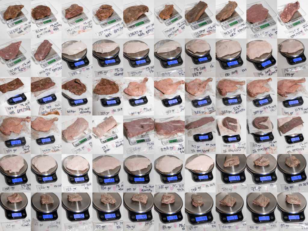 So then I did a lot of experiments where I cooked meat sous vide right away after salting and vacuum sealing it and compared that to allowing the salt 1 hour or 24 hours to penetrate into the meat before cooking. I did this with meats requiring a short cooking time such as chicken breast, but also with cooking times of 24 or even 48 hours. Most of the experiments were with lower cooking temperatures.