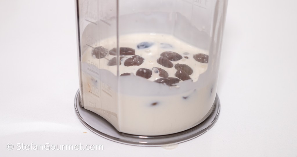 To make the sauce, combine 120 ml of cream with 30 grams of pitted black olives…