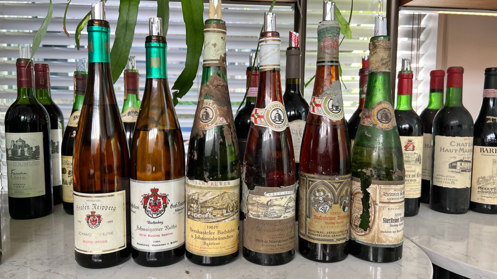 This flight demonstrates the power of sugar for preserving wine, as sweet Rieslings from the 50ies had held up better than dry Rieslings from the 80ies in the previous flight as well as the dry Riesling from the 90ies in this flight. It would be fun to include the 1959 Riesling in a blind tasting and ask the vintage — I bet that many (including myself) would guess a vintage from this millennium and be off by 40 years or so.