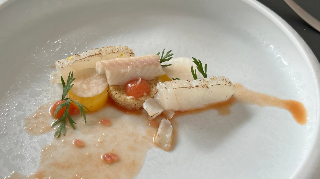 Next was haddock with smoked eel, kohlrabi, tomato, and couscous. The fish had a perfect cuisson, but this was my least favorite dish of the menu because I didn’t really get the combination of components.