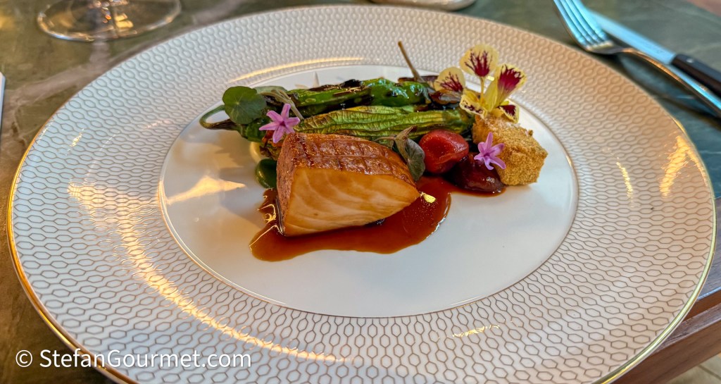 It was a good pairing for the 12 day dry aged swordfish with summer vegetables, black garlic, and macadamia. A delicious and wonderful dish with a lot of flavor. A hefty Chardonnay may have been even better, but Australia doesn’t really produce such heavy Chardonnays anymore.