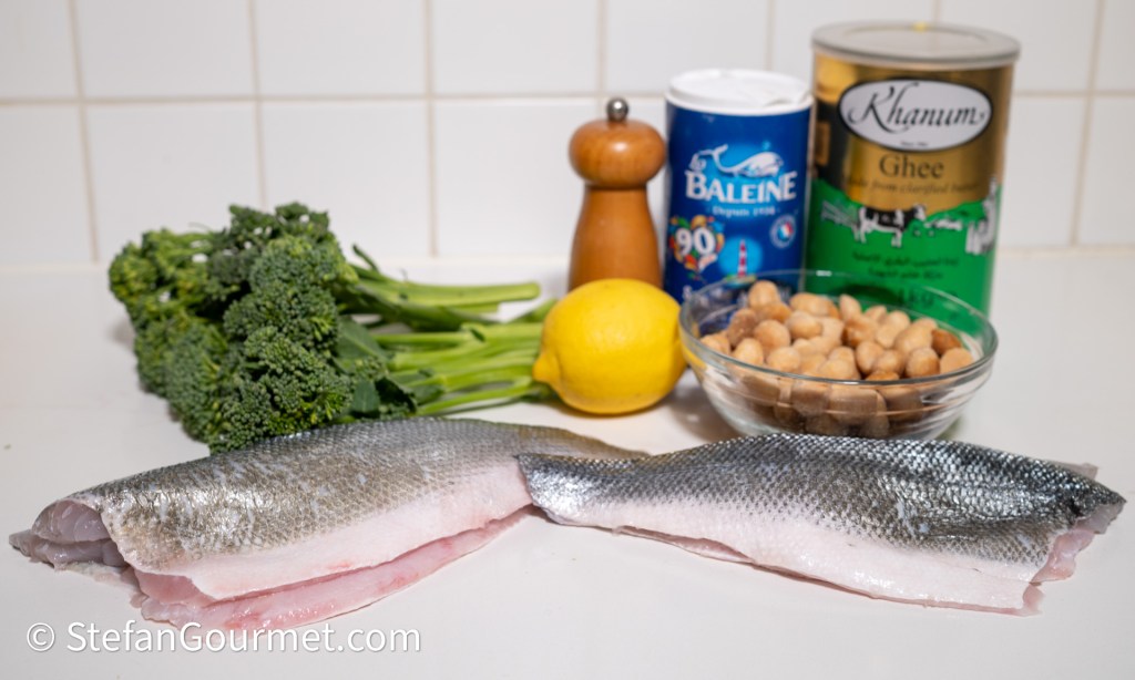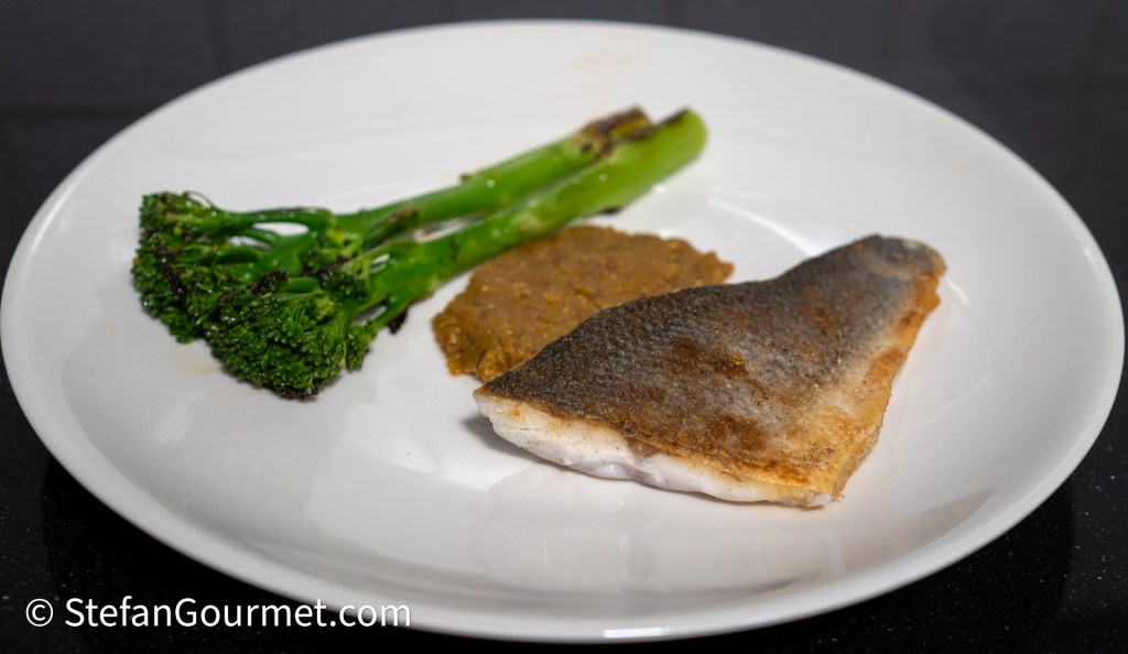 When I posted the recipe for Cod with Macadmia, Lemon, and Broccolini, I already mentioned it could also be prepared with sea bass. I like the version with (European) sea bass, sometimes also referred to by its Italian name branzino, better. Another improvement I’ve made is to roast the macadamias first. I’ve served this dish at wine pairing dinners and it was a great success, so I decided to write a post about this version. I prepared and photographed this recipe while I was still at home, but am writing this from a campsite in Gippsland, Victoria, Australia.