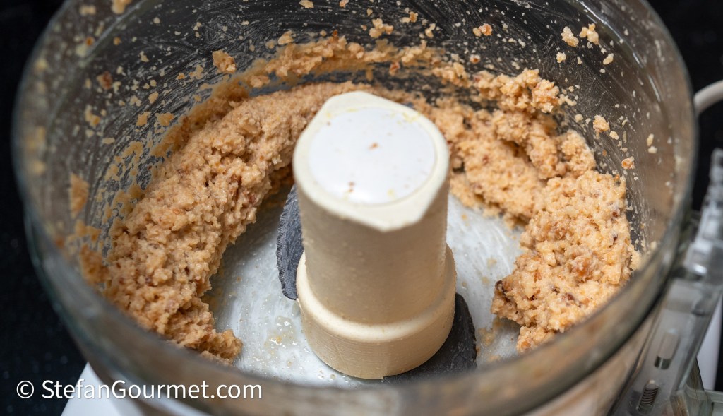 Use a food processor or blender to grind 200 grams of toasted macadamias with 60 ml lemon juice, grated zest of 1 lemon, and 1/4 teaspoon table salt, into a coarse paste.