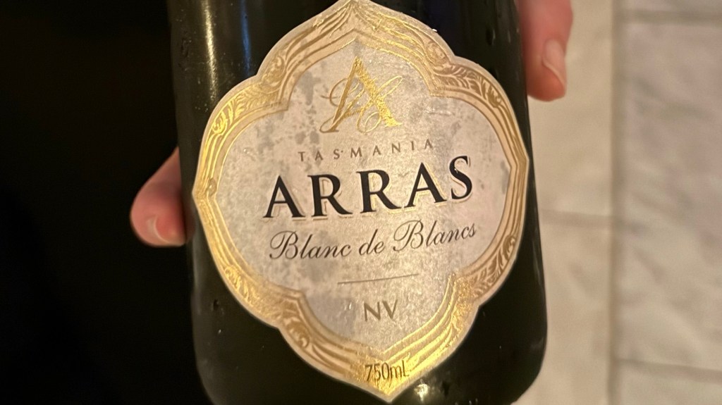 The first wine was a traditional method Blanc de Blancs sparkling wine from Tasmania by Arras, 100% Chardonnay, aged 30 months on the lees. Elegant, well balanced, and fresh.