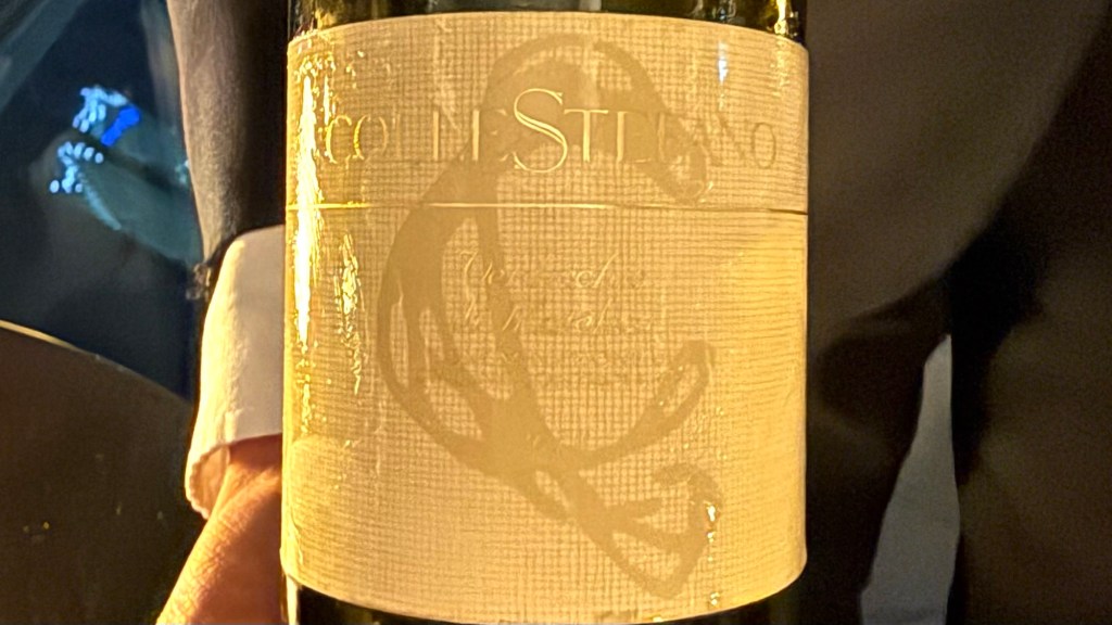 To our surprise the next wine was Italian and well-known to us: a 2019 ColleStefano Verdicchio di Matelica from the Marche (100% Verdicchio, made in stainless steel).