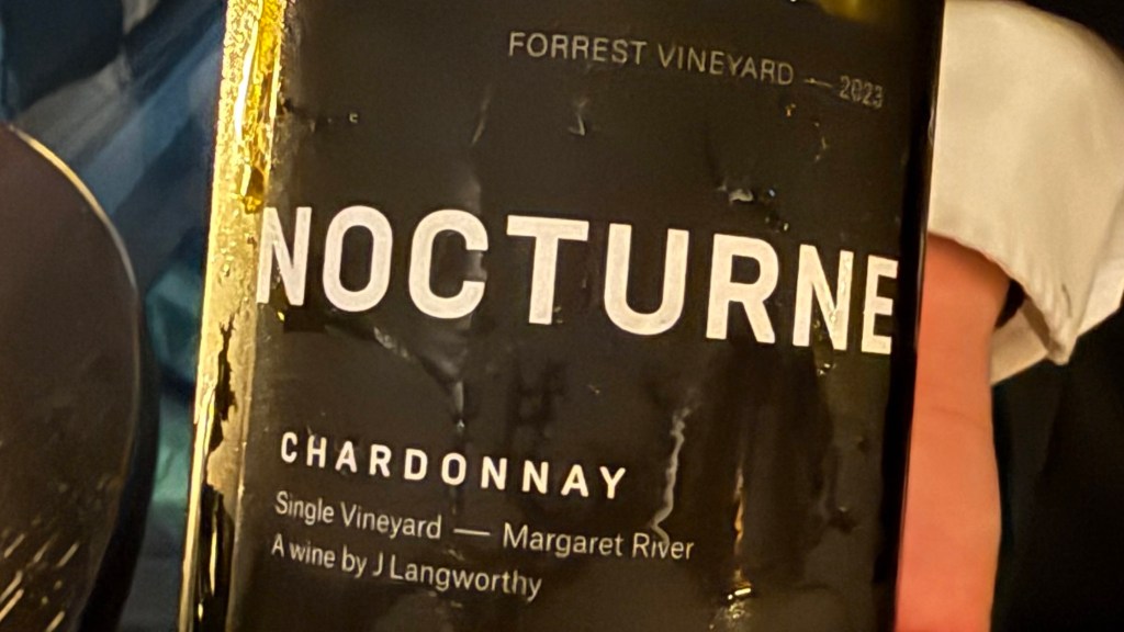 When we pointed out to the manager/sommelier that we would prefer Australian wines while in Australia, he came up with a very nice single vineyard 2023 Nocturne Chardonnay from Margaret River. Well balanced and a mineral/reductive note.
