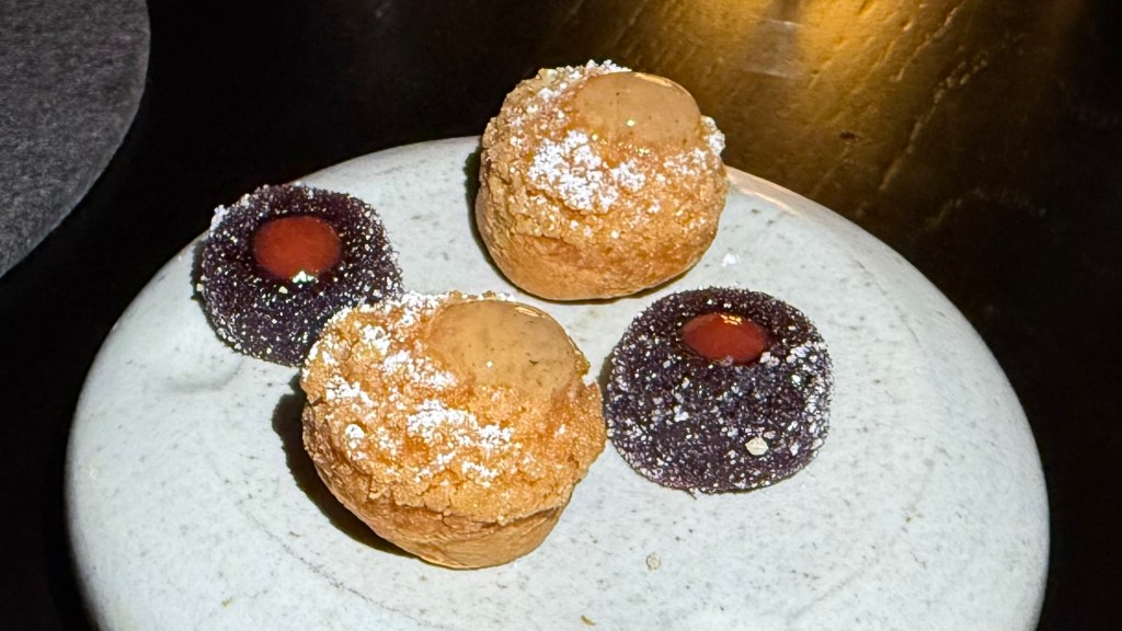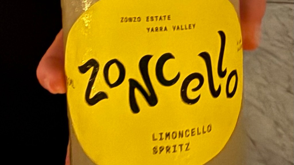 The palate cleanser or pre-dessert usually doesn’t get a pairing, but here it did in the form of a Zoncello Limoncello Spritz from Yarra Valley, Victoria, Australia. It has low alcohol and tastes like a mixture of limoncello with lemon soda.