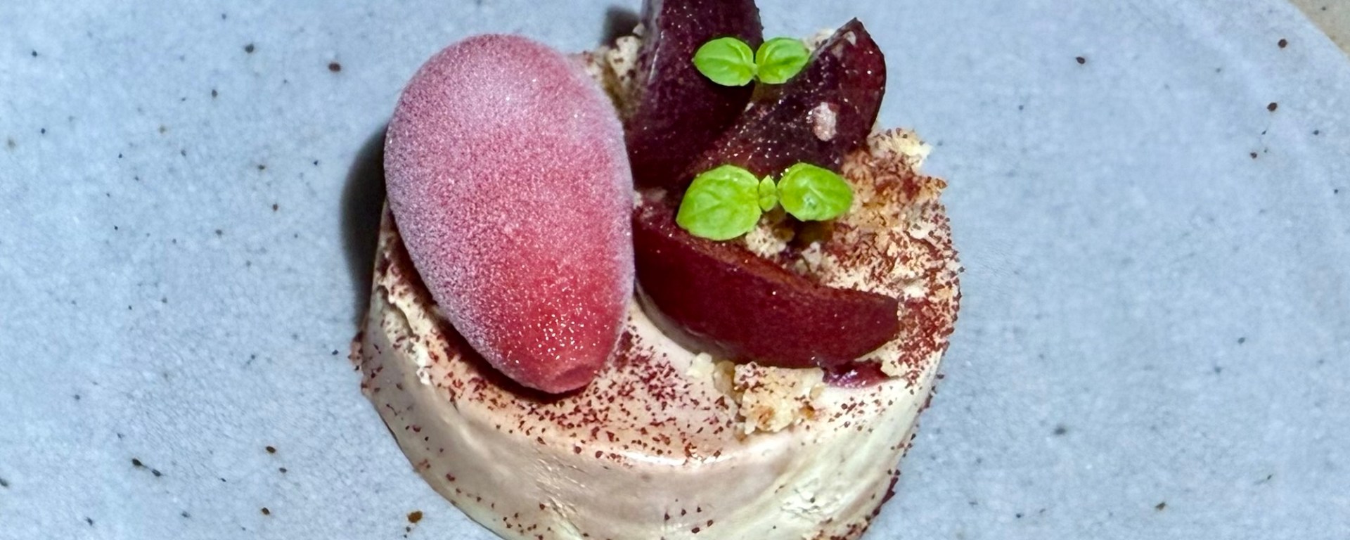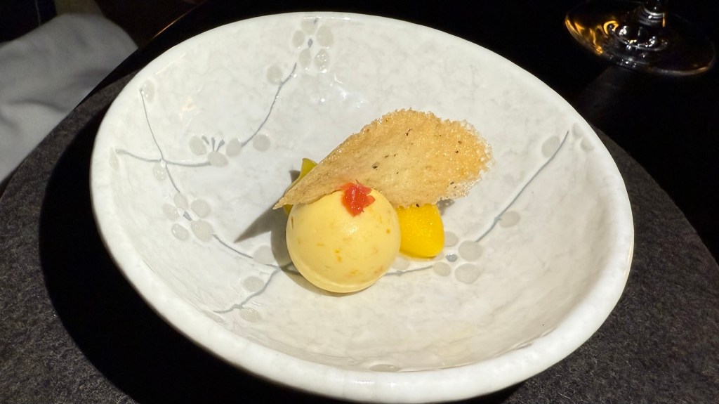 The pre-dessert was a blood lime sorbet with coastal rosemary, mandarin, and wattleseed. Nice and refreshing, and a good pairing with the limoncello spritz.