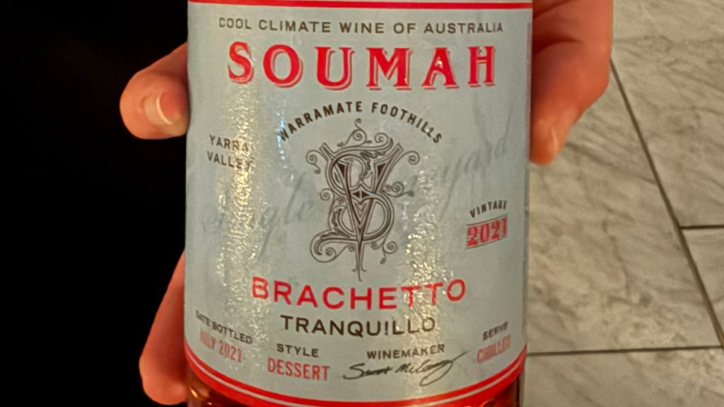 The final wine was a still Brachetto from Yarra Valley. This grape variety is known for Brachetto d’Aqui from Piemonte, a fizzy dessert wine that is like a red version of Moscato d’Asti. This Australian version was mildly sweet with balanced acidity.