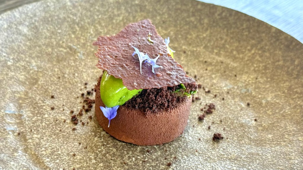 The estate does not produce dessert wine and we skipped the optional Espresso Martini. The dessert was a chocolate parfait with chocolate from the local chocolate shop Bahen & Co, with garden mint mousse, and wattle seed.