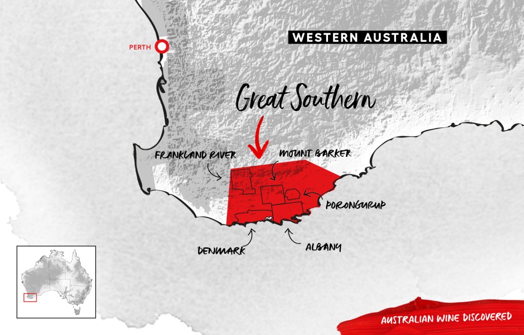 Before I continue about Singlefile and the wines we tasted, let’s have a look at the Great Southern wine region. Although it is geographically large region (100 kilometres (65 miles) north to south and 150 kilometres (95 miles) east to west) it only has some 2,500 hectares (6000 acres) of vines. The main grape varieties are Cabernet Sauvignon, Chardonnay, Pinot Noir, Riesling, and Shiraz. The climate is mostly maritime, but also has mediterranean and continental influences. It is cooler than Margaret River (and the coolest wine region in WA). The development of the region stated in the late 1960s and early 1970s. The Australian Geographical Indication, Great Southern, was registered in 1996. There are five subregions with different climatic circumstances and therefore different grape varities that work best in each subregion: Denmark, Albany, Mount Barker, Porongurup, and Frankland River.