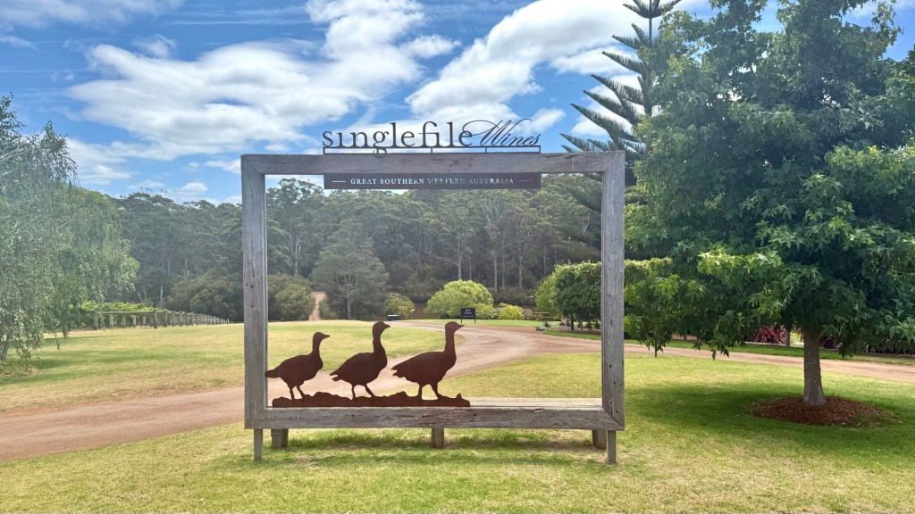 First of all, I had never heard of (or at least can’t remember — I’ll have to check my wine study books when I get back to make sure as I passed the exam in 2016 and may simply have forgotten) the Great Southern wine region in Western Australia. Margaret River is very famous and that wine region was the main reason for visiting this part of Australia, as learning about the wine region meant I had learned about the pleasant landscape and climate. But when we had dinner in Perth at Gibney Cottlesloe, we had a bottle of Singlefile Family Reserve Chardonnay from Great Southern, and loved it. And so when we were staying in Denmark (not the country in Scandinavia but a town on the south coast of Western Australia), I looked up where the winery was. And it happened to be just 10 minutes from our campsite. So even though I had promised Kees this was a holiday and not a wine study trip, I wanted to visit the winery.