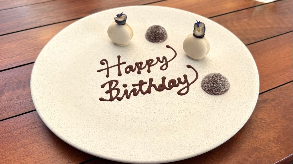 A hugely ‘Happy Birthday’ after the event – great you were spending it with us Down Under . . . and may the year to come be a fruitful one! Trust you to be a Capricorn – that explains a lot . . . I managed to have a mother, a mother-in-law and a husband with birthdays within a three-week period then . . . for a crazy Gemini that was not always easy 🙂 ! You and Kees look well . . . hope you enjoyed the meal! The wagyu and jewfish look well-presented . . . the wines interesting as always. Trust you feel like posting again soon and thank you so much for sharing our country with us . . . 🙂 !
