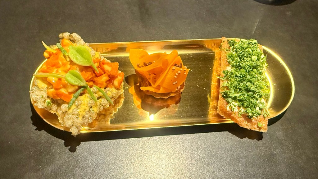 Hugely interesting – I had never heard of the restaurant and am learning. Daresay you two are on a plane northward by now but I am glad your last ‘formal’ meal ‘with us’ was a dinner. Somewhat an unusual menu – am not used to see three sets of ‘snacks’ as you call them? For some reason like the first offering best, tho’ am smiling at ‘carrot tartare’! How did that differ from ‘raw carrot’ 🙂 ? And you have had wagyu beef a number of times . . . and, on the photo, this one actually looks the best! A big smile and thank you for sharing, as I managed to say a few days back already . . . you know we’d love you back when it’s dark and snowing back home! . . .