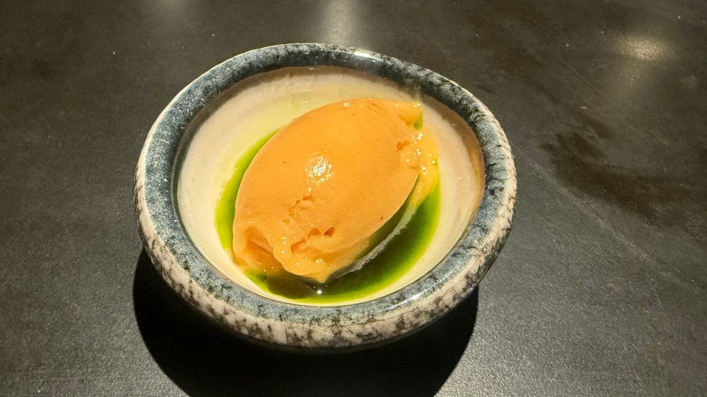 The palate cleanser was a peach and yuzu sorbet.