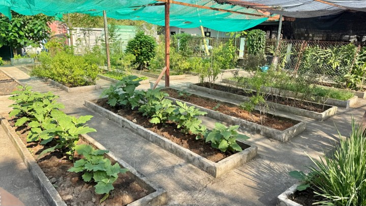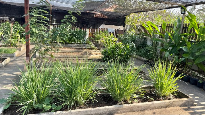 We started with a tour of the garden, where Pea grows her own vegetables and herbs. There had been a flood recently, so everything had to be replanted.