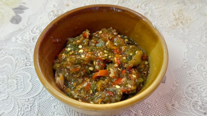 Pea also let me taste a dip that was made for the dinner they were hosting in the evening, which contained eggplant, tomato, shallots, fresh chili, garlic, and fermented fish sauce. Despite the fermented fish and chili, the flavor of this dip reminded me somewhat of ratatouille.