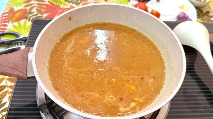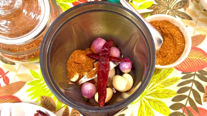 Then water and tamarind were added and blended.
