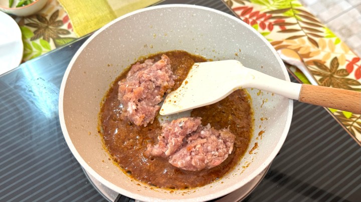 This was fried in a bit of oil, and then ground pork was added.