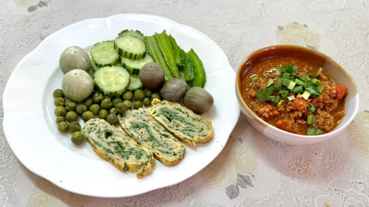 The Nam prik ong was served as a dip for vegetables and some more omelette.