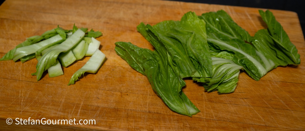Thai pickled mustard greens (ผักกาดดอง / Pak Gad Dong / Phak Kat Dong) is an essential ingredient for Thai dishes like Khao Soi or Khao Ka Moo. It is basically an oriental version of sauerkraut. I don’t care so much for the store-bought vacuum packed version, and I liked it much better when I was in Thailand. The flavor there was more ‘fresh’. And so I decided to see if I could make it from scratch. It turned out that is quite easy; the hardest part is to source the fresh mustard greens. I found them at the Asian supermarket under the Chinese name Gai Choy. I used this recipe as the basis, with one improvement. I really liked the result; it was very similar to what I remember from Thailand. I provide a parametric recipe, so you can weigh the amount of mustard greens and then adjust the other ingredients accordingly. This recipe uses vinegar; I think it should also be possible to allow the natural fermentation process to make it sour. That would take more time.