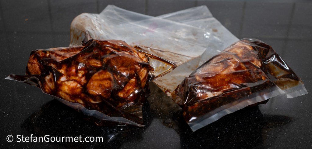 Vacuum seal the pork hocks with the spice mixture. If you do not own a vacuum machine with a chamber, it may be easier to use a ziplock bag and the water displacement method.
