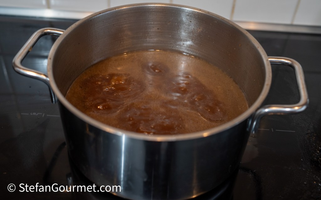 Bring the stock to a boil, then reduce the heat to a simmer.