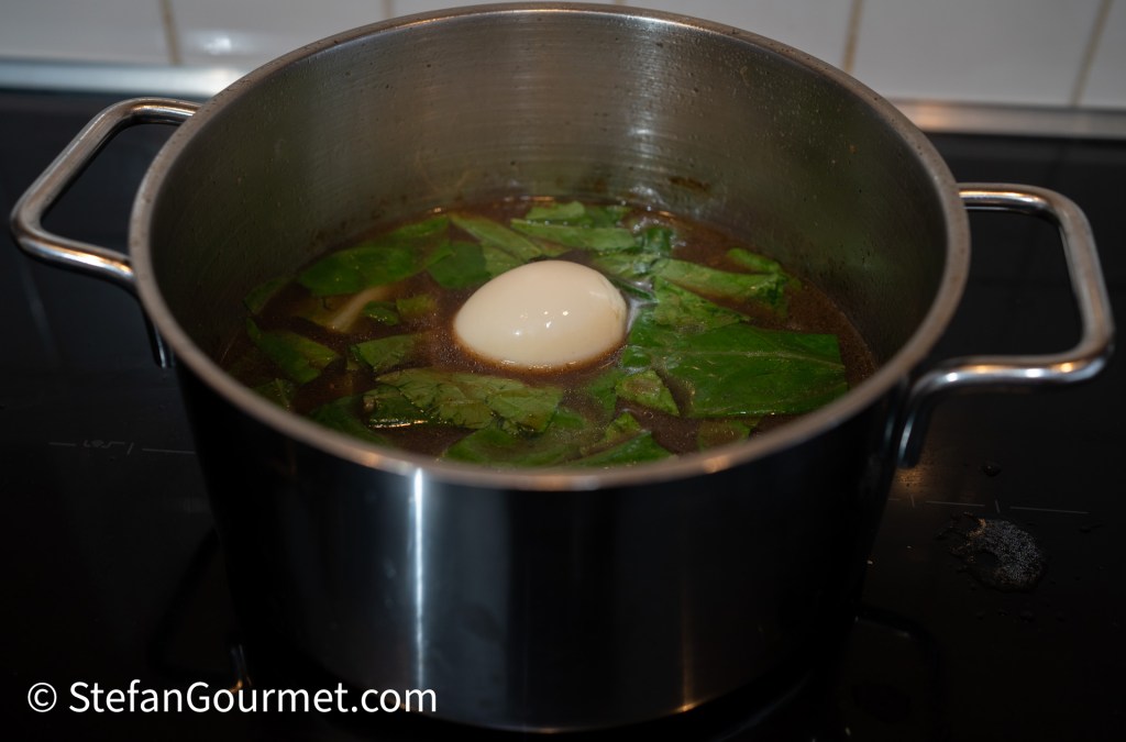 Cook the peeled eggs for about 10 minutes at the end (do not reheat them in a microwave).
