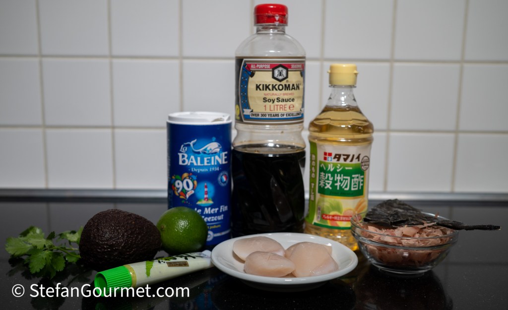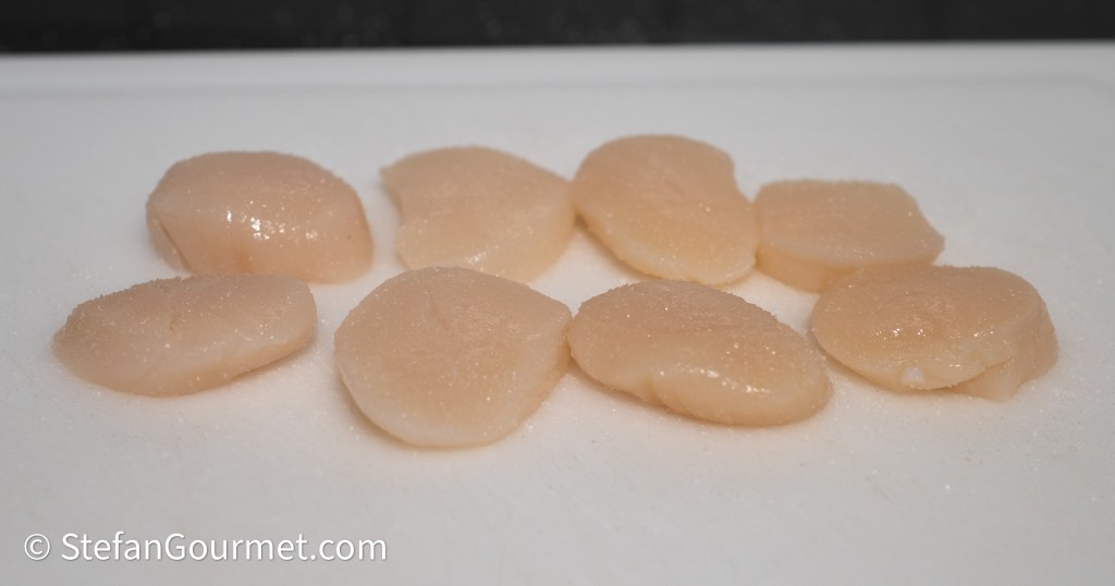 It is the same story for scallops. I use high quality Japanese scallops that are already frozen. But if I can get fresh live scallops in the shell, I will use them without freezing, accepting the risk of parasites.