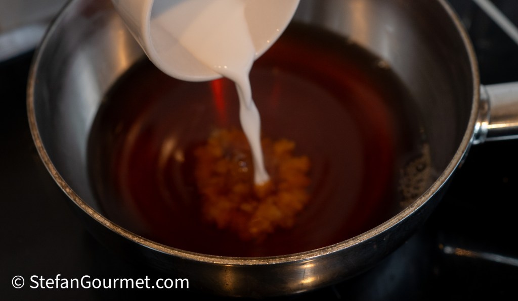 Bring to a boil, stirring, until the liquid has a syrupy consistency. If it is too thin, make some more arrowroot slurry with cold water, and repeat.