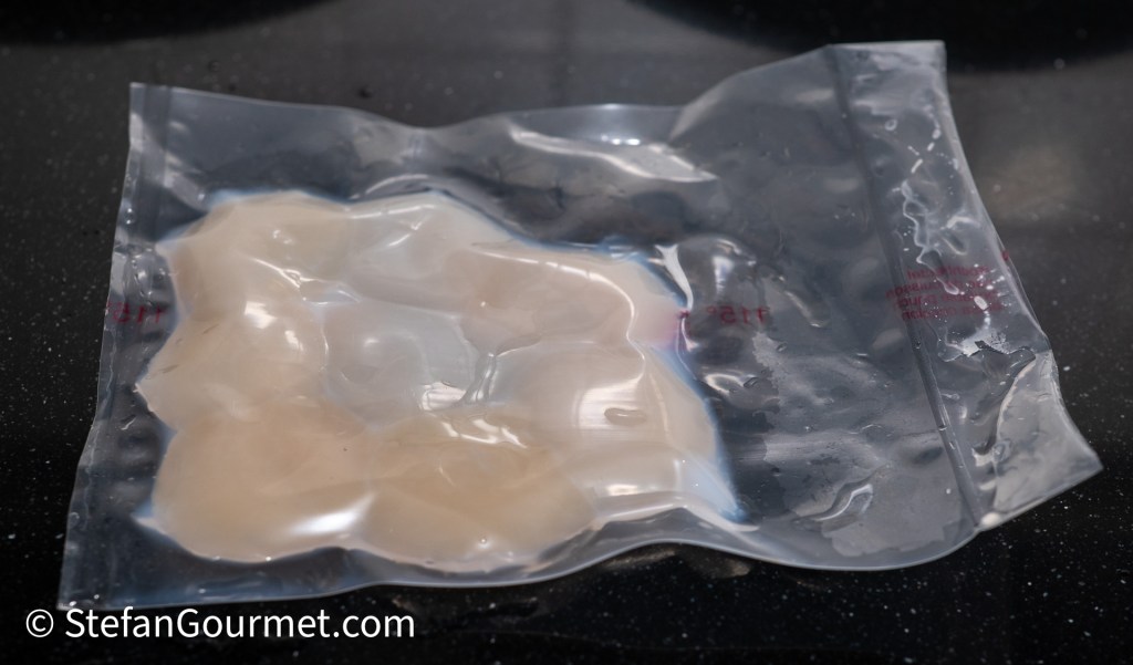Vacuum seal the salted scallops and allow them to cure for at least an hour in the refrigerator.