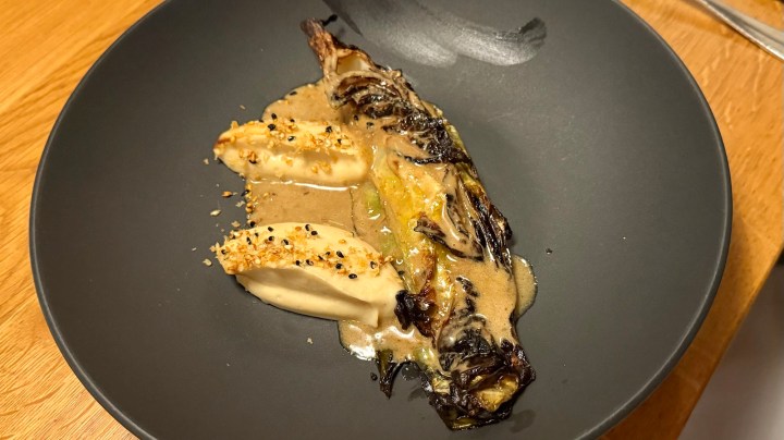 Next was cabbage, barbecued with beurre noisette, with a miso and celeriac cream, and XO sauce. The cabbage had nice crispy edges with barbecue flavor and this was another great pairing.