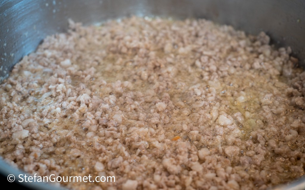 What I did was to first let the ground pork belly melt in 1 tablespoon of oil…
