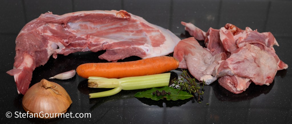 Roast the bones and trimmings in the oven at 190C/375F (fan forced) until they are nicely browned, about 30 minutes. This step is important to get a nice deep flavor.