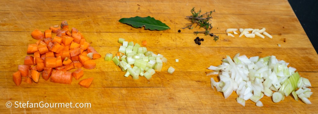 Chop the carrot, onion, celery, and garlic.