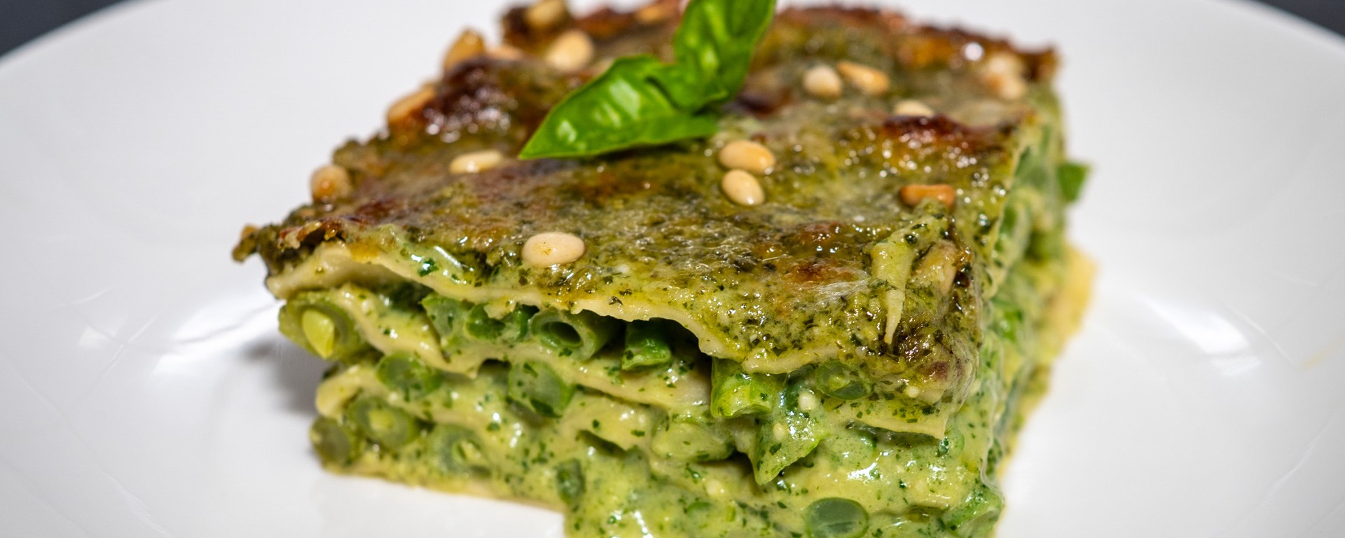 Making homemade lasagna is a lot of work, especially if you prepare fresh pasta dough, but it’s absolutely worth it. Most people are familiar with lasagne alla bolognese, but one of my favorites is lasagne alla genovese. Both dishes feature the most iconic recipe from their respective hometowns: ragù alla bolognese from Bologna, and pesto alla genovese from Genoa. In the Genovese version, the pesto is mixed with béchamel, and the lasagna is layered with grilled zucchini or green beans, sometimes with the addition of boiled potatoes.