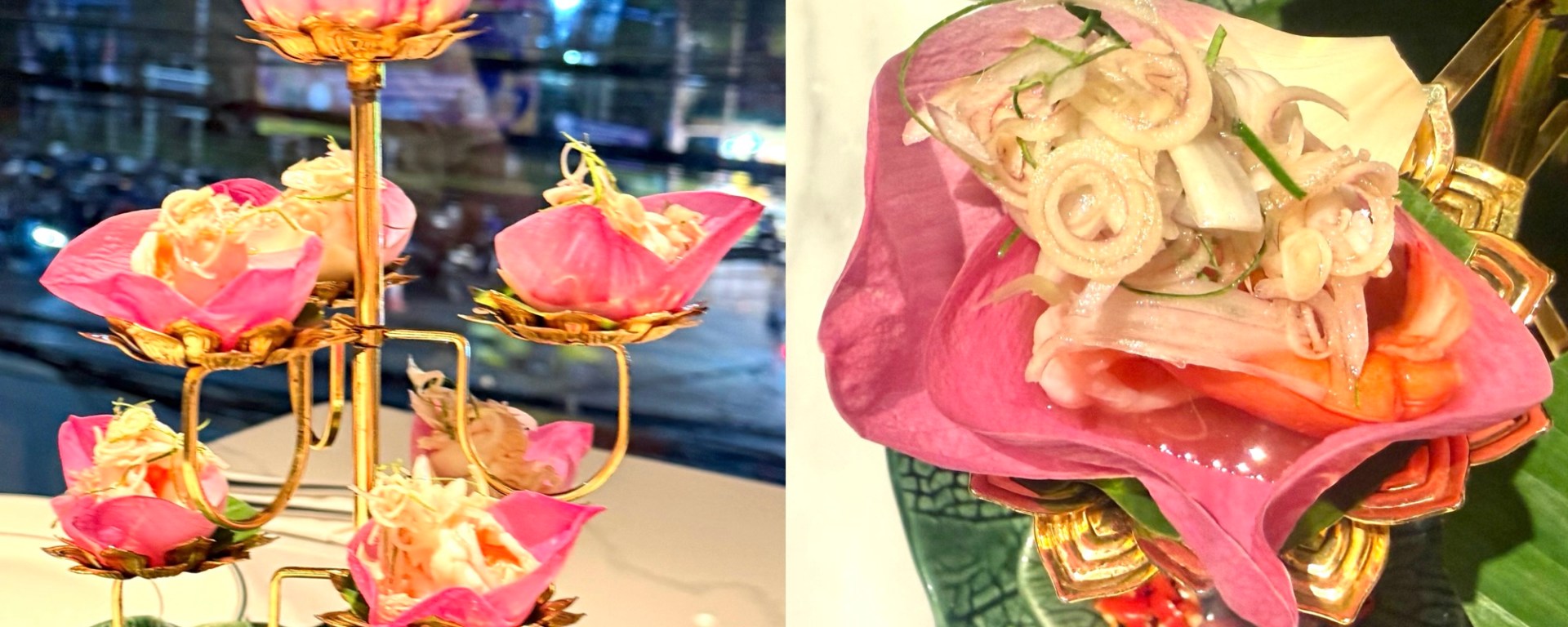 We discovered this restaurant for our penultimate dinner on Phuket and liked it so much that we returned the next day to try more dishes. I’m covering both meals in this review, starting with the appetizers from both meals and finishing with the mains. The portions are quite generous, and we wanted to try a lot of dishes, so we didn’t have room for dessert. There was a limited wine list with high but not crazy prices, but we decided to just drink water. There is no tasting menu or wine pairing. The prices are higher than at average Thai restaurants (which are dirt cheap, most dishes costing around €3); around THB 500 (€14) per dish.
