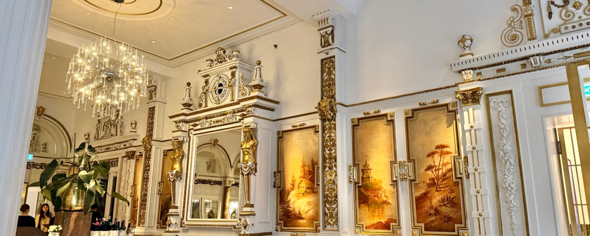 The restaurant is located in a historic dining room opened in 1885 by Krasnapolsky in what later became the Krasnapolsky hotel. Its original name was “De Witte Zaal”, which translates to “The White Room”. As a national monument, the space features beautiful belle époque details and was carefully restored before the current restaurant opened.