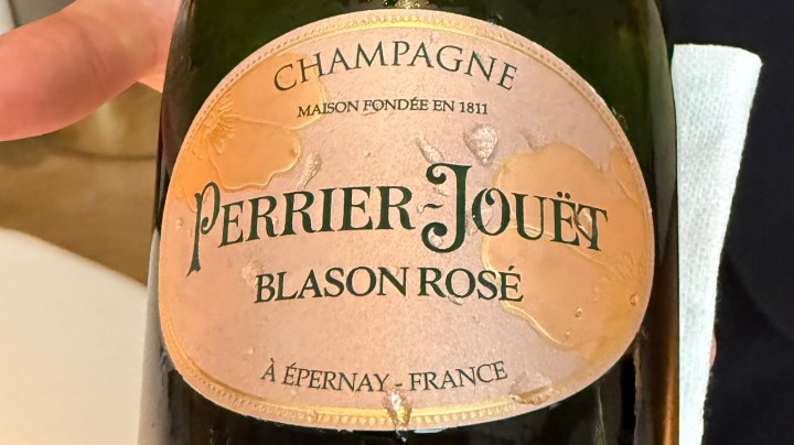 There were seven different sparkling wines available by the glass. I appreciated that the champagne cart had a price list, as often you are asked to choose an aperitif without knowing the prices and then only discover when the check comes you ordered something that was 50 euros per glass. The White Room has six different Champagnes from Perrier-Jouët, and we opted for the Blason Rosé, a blend of 50% Pinot Noir (partly vinified as a red wine to create the rosé), 25% Chardonnay, and 25% Pinot Meunier.