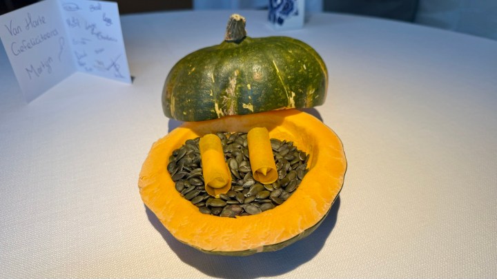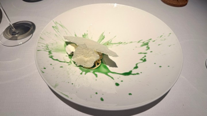 The ambiance and service were the final pieces of the puzzle. One look at the dining room confirms that the decor is spectacular, with tables spaced in a manner more reminiscent of a two-star establishment than a one-star. The service was both friendly and attentive, embodying the philosophy that the best service is the kind you don’t even notice—where the evening progresses perfectly and seamlessly. It is the small details that make this possible. For instance, a waitress cleared our plates without interrupting us because she noticed we were in the middle of a conversation. Similarly, Philip spotted from across the room that Martijn was dividing the last piece of bread and immediately brought more without being asked. The pacing of the evening was also flawless; the wines arrived exactly on time, and there was never a moment where we felt we were waiting.
